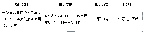 1.項目名稱:安徽省鹽業(yè)投資控股集團(tuán)2022年財務(wù)顧問服務(wù)項目(1)